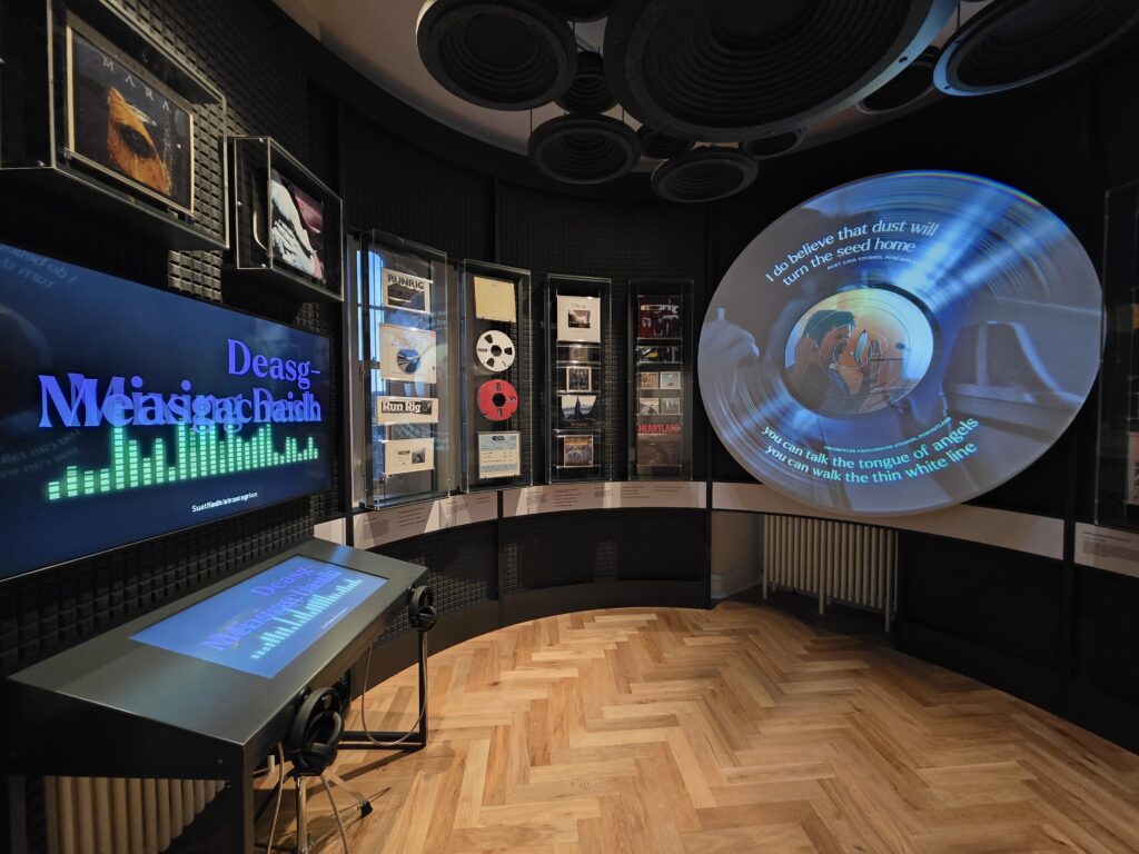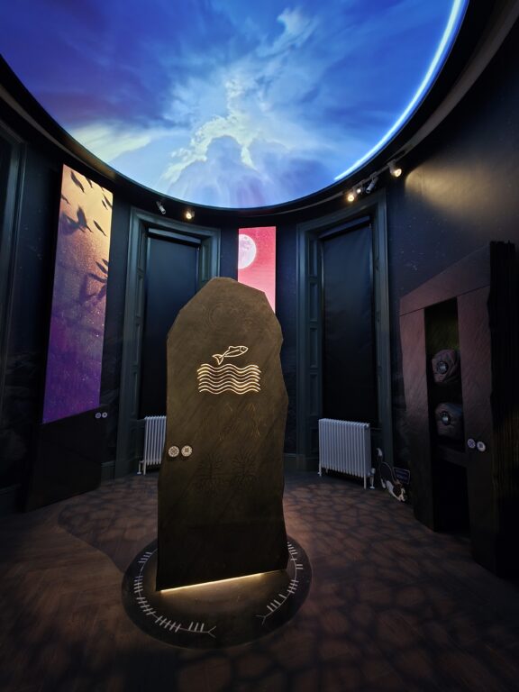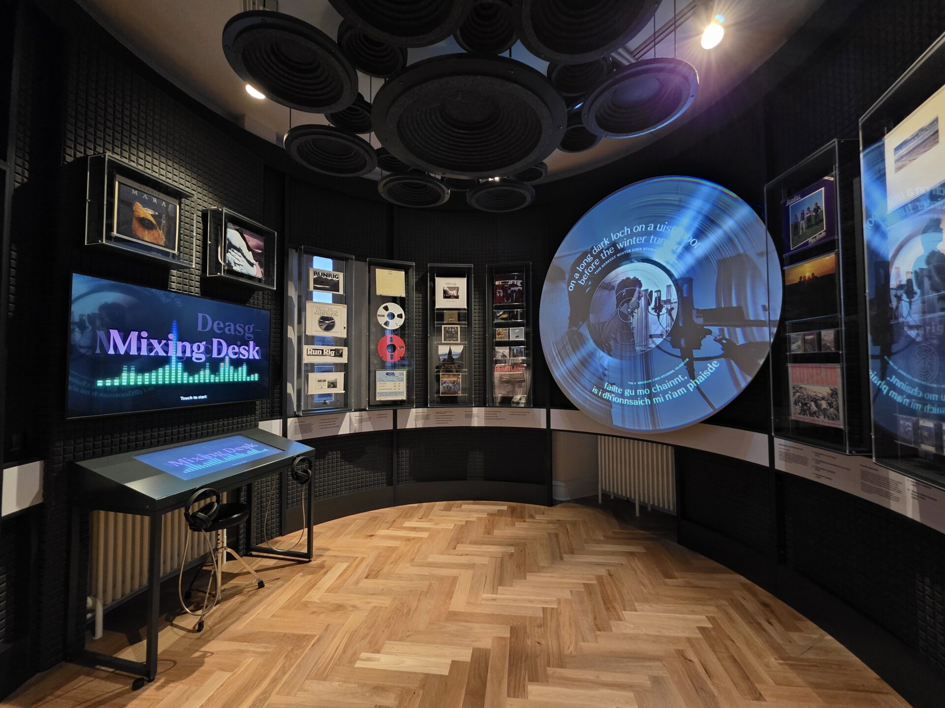 Visitors move through a series of curated environments – from the Landscape rooms to the Ceilidh Fire – where audio storytelling takes precedence over traditional interpretation.